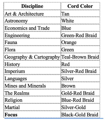 Novice – Enrolled in a Cadre. Must earn a 1-knot Focus Cord and be guided by an Acolyte and Master.