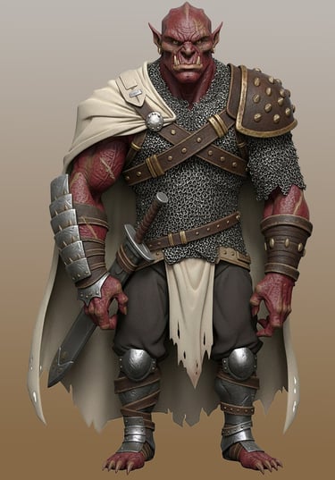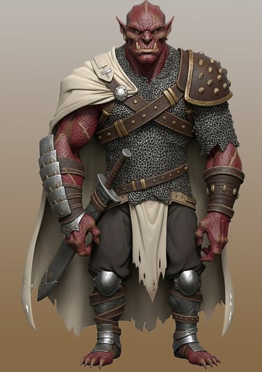 The Goebs are generally human-like in their overall appearance. They are tall, completely hairless, extremely muscular, with thick heavy, leathery skin. Their skin is somewhat comparable to rhinoceros hide. This helps in combat, but it also provides insulation and a degree of imperviousness in colder climates. It does, however, have the opposite effect in the heat - as it doesn't sweat much - it is very hard for Goebs to regulate their body temperature in hot and dry climates. Feature-wise, Goebs resemble tall, muscular humans.